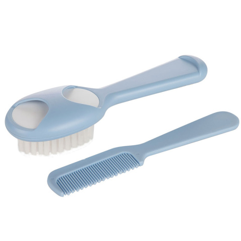 Zestaw szczotka z grzebieniem do czesania włosów dla niemowląt. Syntetyczne włosie szczotki gwarantuje bezpieczną i przyjemną pielęgnację delikatnych włosków maluszka. Ergonomiczny kształt grzebienia i szczotki ułatwia wygodne użytkowanie, a specjalny schowek na grzebień pomoże w utrzymaniu porządku w akcesoriach maluszka Grzebień posiada zaokrąglone ząbki, które nie podrażniają wrażliwej skóry malucha. Szczotka delikatnie masuje główkę dziecka wzmacniając włosy. Idealna od pierwszych dni po urodzeniu. Zestaw dostępny w kilku wariantach kolorystycznych.