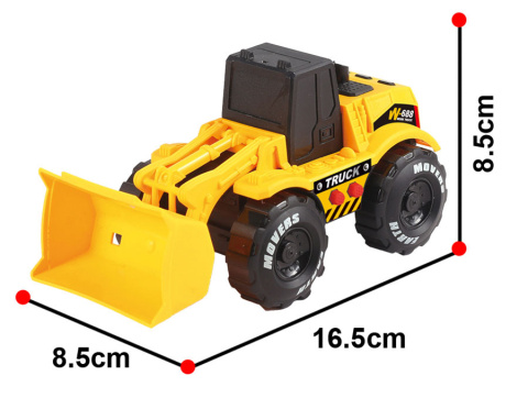 To prawdziwa gratka dla najmłodszych fanów motoryzacji i majsterkowania. Model pojazdu wzorowany na prawdziwym pojeździe budowlanym zachwyci każdego malucha! Ciekawe wykonanie, wbudowane dźwięki, święcące światła na pewno zadowolą każde dziecko. Dodatkowo koparka posiada ruchomą łyżkę, możemy nią operować jak w prawdziwym pojeździę budowlanym. Ponadto dzięki napędowi typu friction power możemy rozpędzić autko.