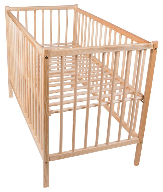Łóżeczko JACEK I Proste wykonane z drewna SOSNOWEGO o wymiarach 120x60 cm. Wyciągane szczebelki, dwupoziomowe, lakier bezbarwny, ekologiczny. Polska produkcja. Nowoczesne wzorownictwo.