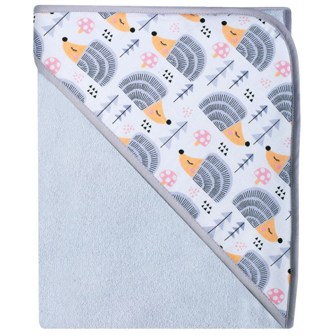 Ręcznik z kapturkiem, okrycie kąpielowe dla dziecka 80x80 cm bawełna wzór SZARY Jeże