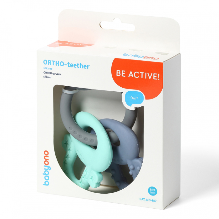 ORTHO gryzaki od BABYONO to specjalnie zaprojektowana grupa produktów odpowiadająca na potrzeby najmłodszych. Proces wzrostu i przebijania się pierwszych ząbków jest bardzo trudny w kon-tekście psycho-fizycznym zarówno dla dziecka, jak i dla rodzica. Dzięki fachowym konsultacjom ortodontycznym stworzyliśmy linię produktów, która niweluje wszelkie niedogodności.
