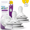Smoczek do karmienia dla dziecka firmy Avent, seria Natural. Smoczek silikonowy o najwolniejszym przepływie przeznaczony dla dzieci od urodzenia. W opakowaniu 2 sztuki.