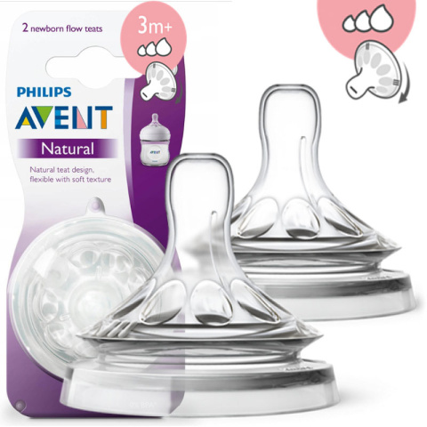 Smoczki do butelki ANTYKOLKOWE Avent NATURAL 3m+ Silkon trójprzepływowe
