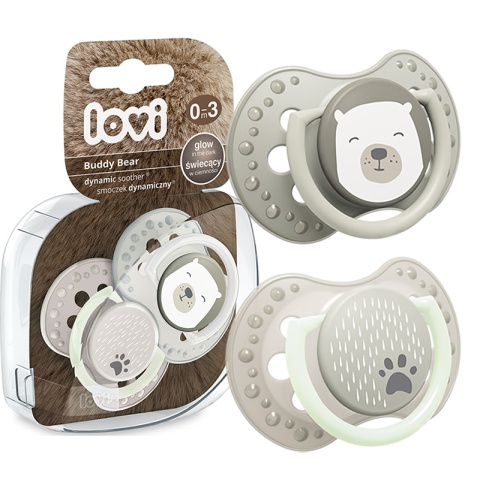 Smoczek uspokajający dla dziecka LOVI 0-3 m Buddy Bear świecący w ciemności
