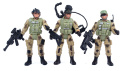 Zestaw do zabawy w wojsko składa się z 6 dużych figurek żołnierzy - każda z figurek ma ok. 10 cm wysokości. Figurki zostały wykonane z plastiku, posiadają ruchome ręce, nogi oraz głowę - można np. podnosić ręce do góry albo zmieniać pozycję figurki np. do pozycji siedzącej. Dodatkowo każda z figurek ma możliwość uzupełnienia stroju o założenie plecaka na plecy czy umieszczenie broni w dłoń. Akcesoria dołączone do zestawu są niezbędne, aby dziecko mogło wcielić się w rolę komandosa.